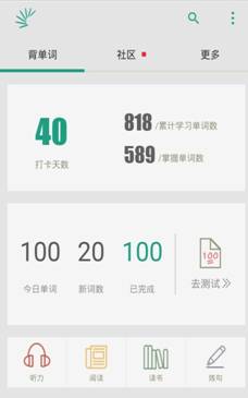 图1扇贝单词打卡40天,学生累计学习单词818个