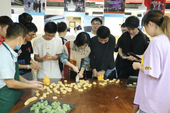 在“月饼DIY”区,人文学院郭兰兰老师教同学们亲手制作月饼