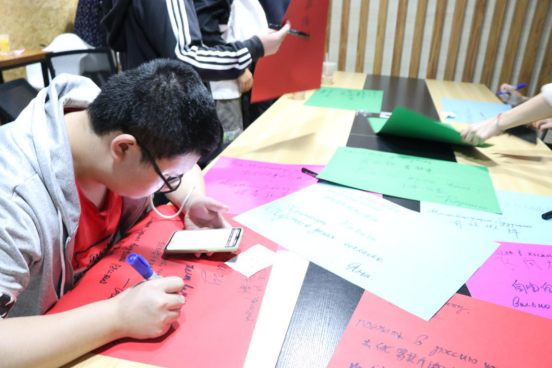 “勇敢秀梦想”活动中,同学们在梦想板上写下了青春的誓言。