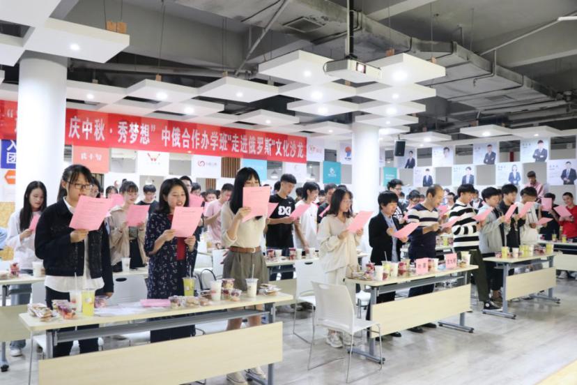 (通讯员 卢海燕 陈怡)9月29日晚,由国际学院、人文学院共同举办的“迎国庆·庆中秋·秀梦想”中俄合作办学班“走进俄罗斯”文化沙龙活动在创业学院一楼大厅隆重举行。人文学院院长叶蓉教授等10余名教师陪同2019级中俄合作办学班93名学子度过了温馨快乐的夜晚。