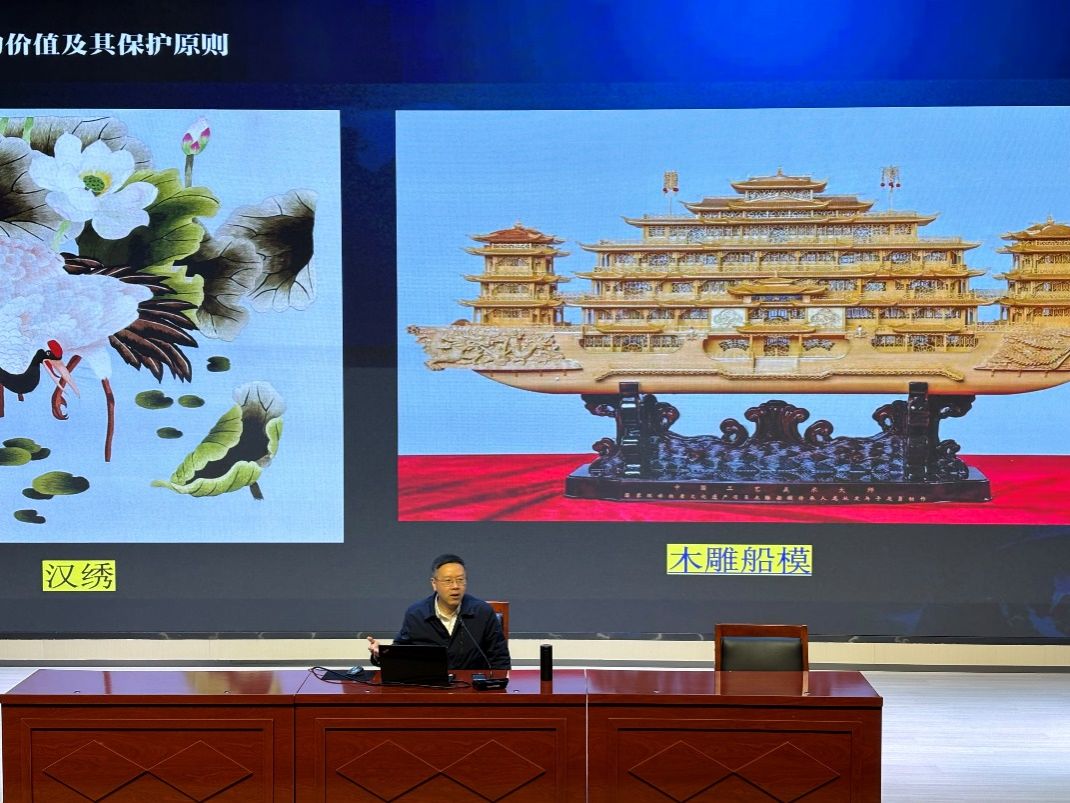 庄桂成教授介绍武汉国家级非遗“汉绣”与“木雕船模”