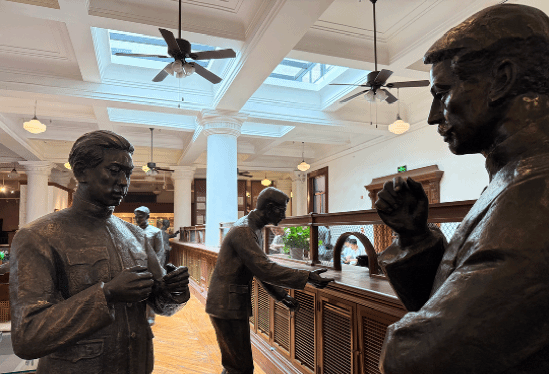 15时,博物馆讲解员以“江汉关与武汉现代化进程”为主线,系统梳理了武汉从被迫开埠到自主开放的转折历程。“这座钟楼不仅是时间的刻度,更是历史的见证。”讲解员指着钟楼机械装置介绍,“1924年江汉关落成时,钟声敲响的是殖民统治的屈辱;如今,它鸣奏的是民族复兴的强音。”教师们跟随讲解,深入了解了爱国实业家卢作孚、金融家周苍柏等统战代表人物在民族危亡之际的担当,对中国共产党团结各界力量共克时艰的统战智慧有了更深刻的体悟。
