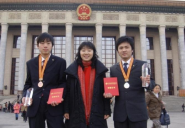 图2:禹诚教授带领学生到人民大会堂领奖