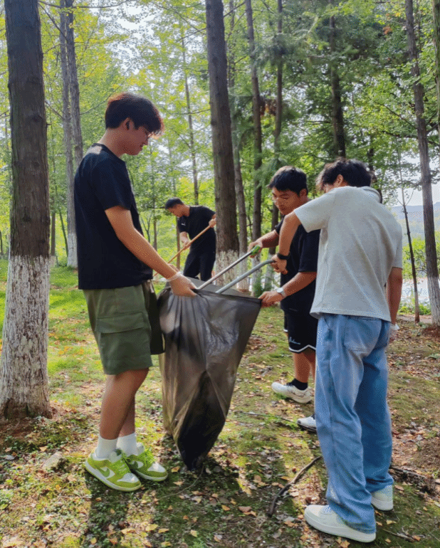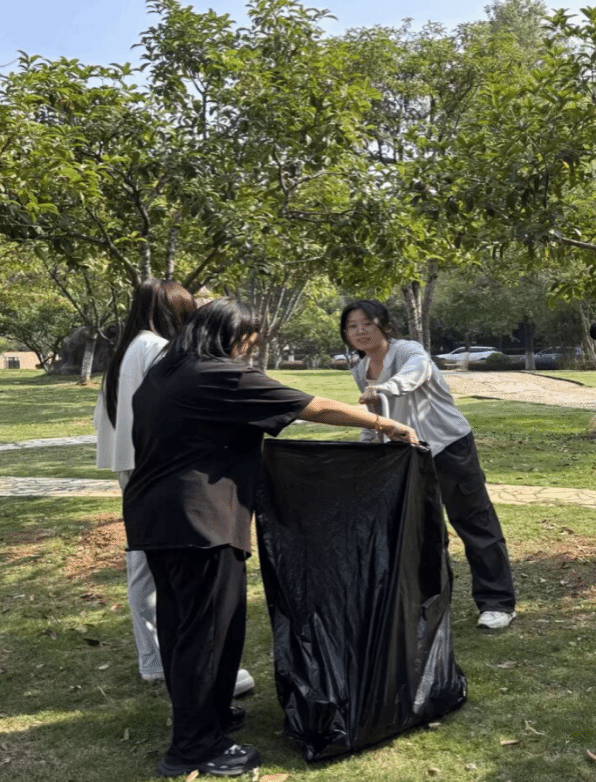 同学们手持扫帚、耙子、垃圾袋等工具,跟着后勤保洁人员穿梭在校园的林荫道、教学楼前广场和宿舍区。与其他季节不同,秋季清扫的重点是及时清理堆积的落叶 —— 既要用耙子将散落在草丛里、石板缝中的落叶细致归集,避免落叶腐烂影响土壤透气,又要将不同种类的落叶分类收纳,部分完好的枫叶、银杏叶还会被挑选出来,用于后续校园文化装饰。保洁师傅们还现场演示了落叶堆肥的初步处理方法,让同学们了解 “废弃物资源化” 的环保理念。汗水浸湿了衣衫,却让同学们真切体会到:秋日校园的整洁之美,不仅源于自然的馈赠,更离不开每一位劳动者的细致守护。