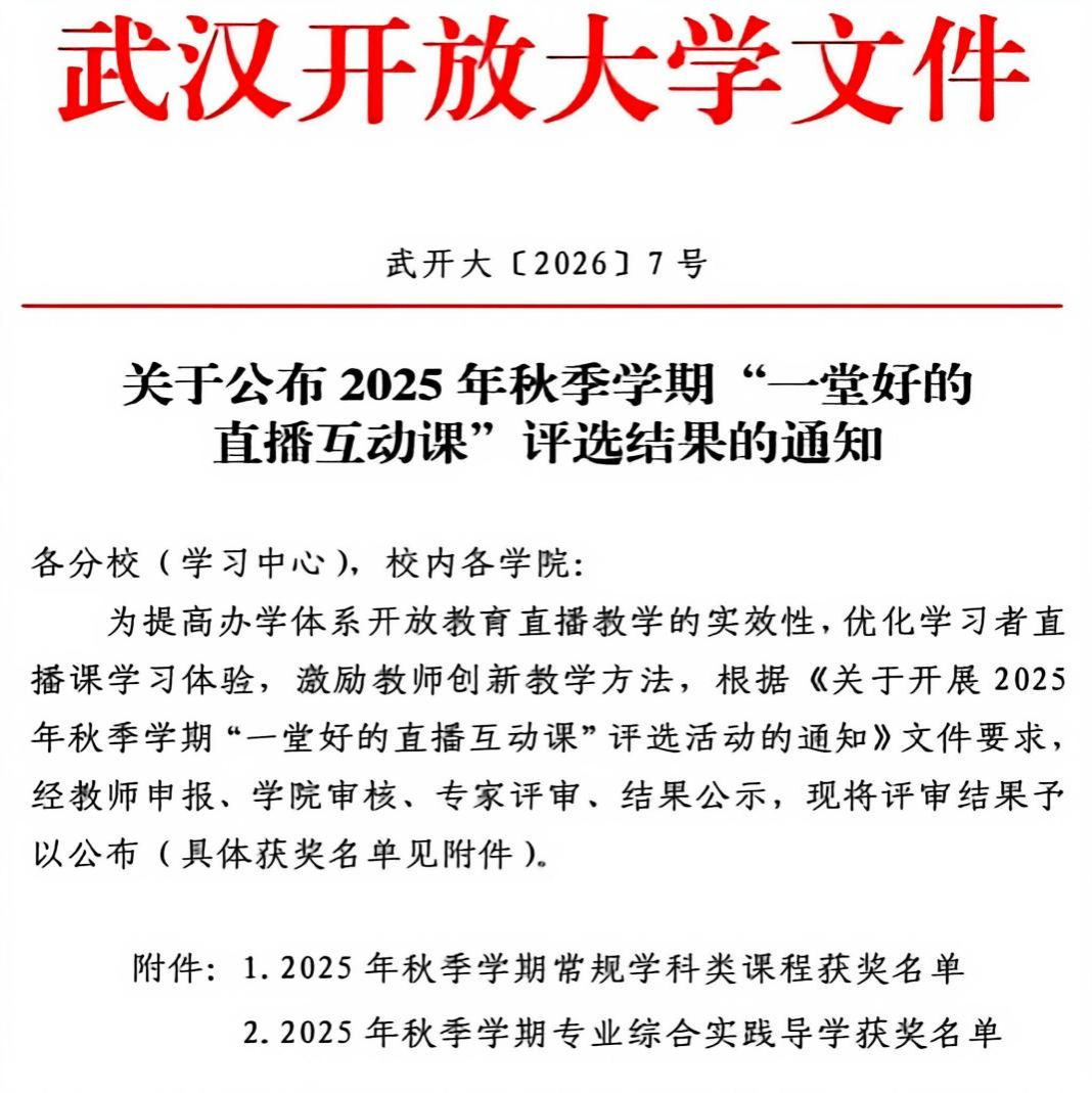 本次获奖,是通识学院深化教育教学改革、推进数字化教学创新的重要成果,精准契合国家开放大学线上教学为主、直播互动赋能、优质资源共享、服务终身学习的办学特色与教学特点,也是学院深耕开放教育模式、提升教师教学能力的集中体现。通识学院将以此次评选为契机,总结推广优秀直播教学经验,持续优化线上教学体系,不断提升通识教育质量,以高质量开放教育教学实践,助力学校建设高水平中国特色开放大学。