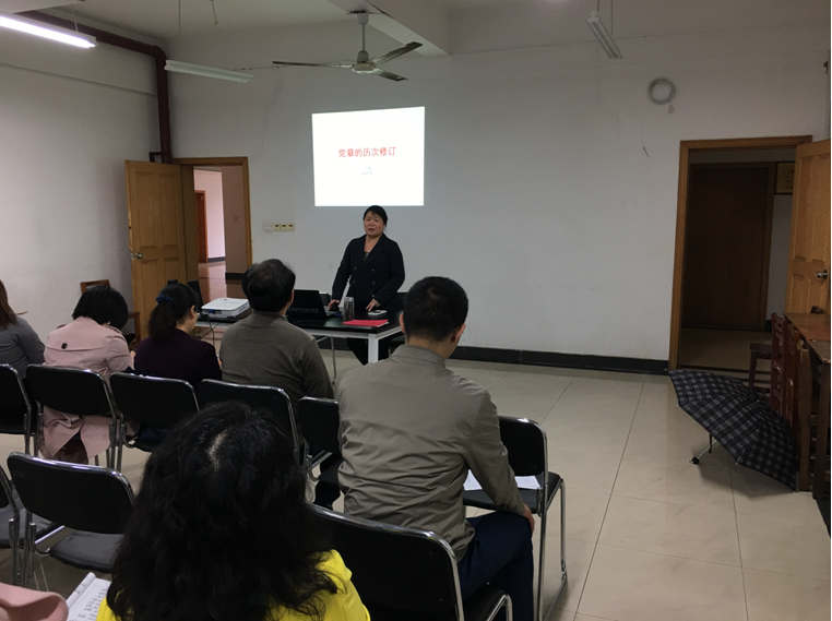 王军梅老师为大家讲解了中国共产党党章的形成及修订过程,她用简洁的报纸图片展示了党的一大到十八大的伟大历史记录,深入浅出讲解了中国共产党每一次全国代表大会的历史时刻和关键事件及党章的逐步修订完善过程。最后,她借用党史专家的视频资料,全面客观地展示了我党党章内容深刻反映时代变迁和历史史命的特征,为大家关注国家发展新形势,关注党的十九大及党章的新变化,深入学习新党章和严格遵守新党章奠定了良好的基础。