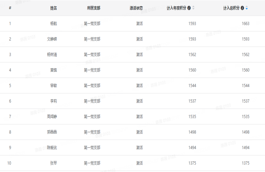 九月份教工第一党支部党员(前十名)“学习强国”学习情况