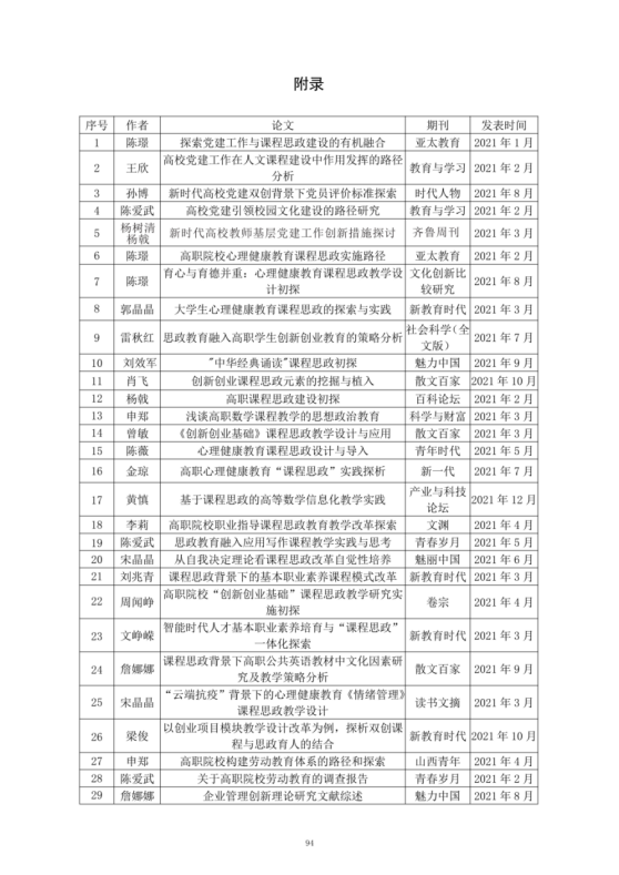 此论文集共收录一支部党员公开发表的38篇论文,论文主题涵盖高校党建、课程思政、劳动教育和教学创新。开展年度优秀论文征集是一支部围绕教育教学中心工作,深化党建工作的创新举措,旨在动员教师党员们奋斗在教学一线,教研在教学一线,成长在教学一线,充分发挥党员的先锋模范作用。该论文辑是继《人文学院教工第一党支部2020年论文专辑》后,一支部创建“全国党建工作样板支部”的又一成果。