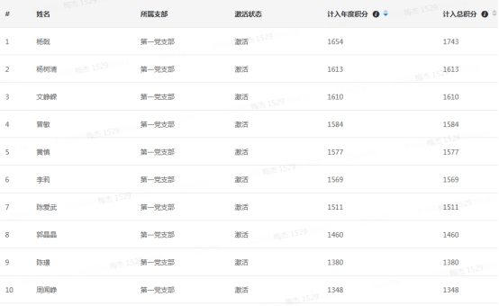十二月份教工第一党支部党员(前十名)“学习强国”学习情况